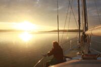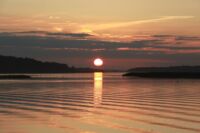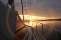 Bild 03: Sonnenuntergang am Ankerplatz in der Orther Bucht.